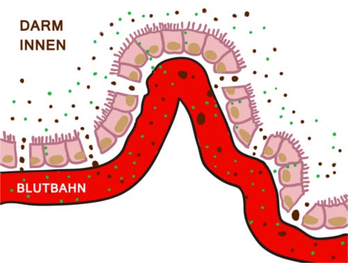 Siehe hier: Das sogenannte Leaky Gut Syndrom (durchlässige Darmwand):