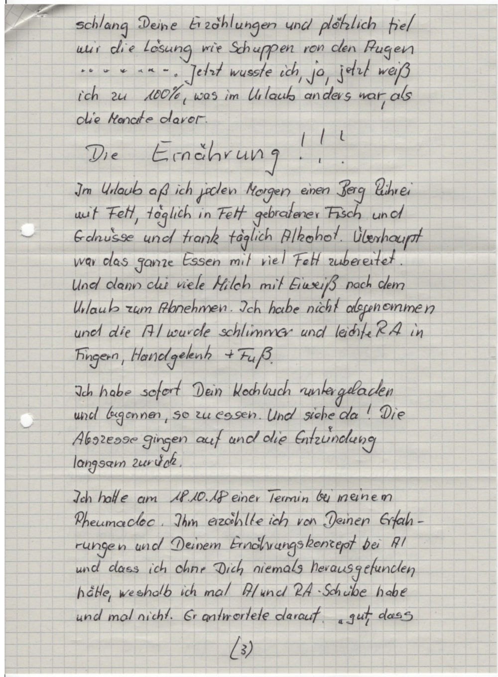 Durch eine einfache Umstellung meiner Ernährung und teils geringfügiger Optimierung meines Lebensstils wurde ich innerhalb von 3 Monaten beinahe beschwerdefrei. Nach 6 Monaten hatte ich keinerlei Probleme mehr, bis heute, viele Jahre später, wofür ich unendlich dankbar bin.