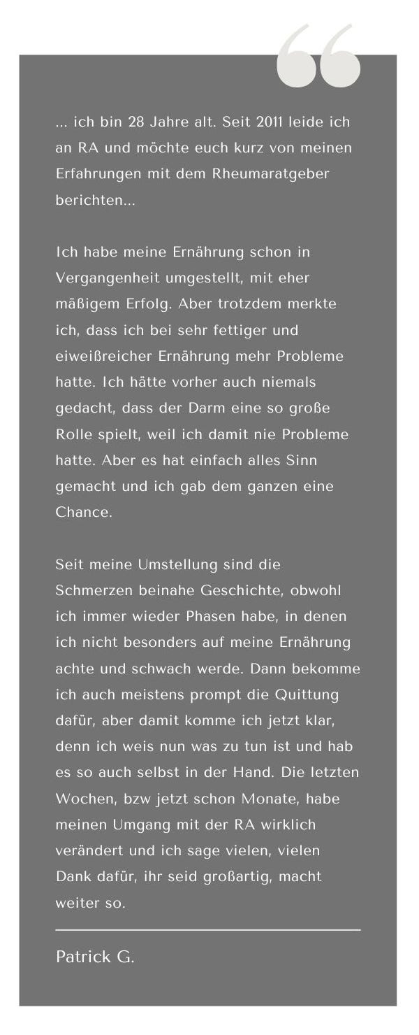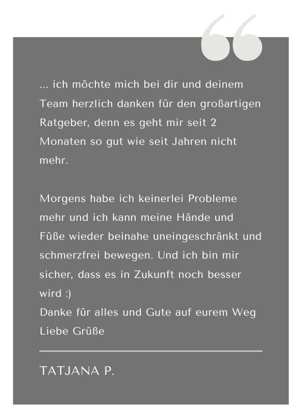 Unser Leitfaden konnte bereits vielen hunderten, wenn nicht tausenden chronisch erkrankten Menschen mit den unterschiedlichsten rheumatischen Beschwerdebildern helfen. Und darüber sind wir sehr, sehr glücklich, und auch stolz.